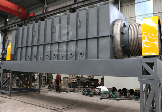 養(yǎng)殖規(guī)模較大養(yǎng)殖場每天產(chǎn)生的畜禽糞便量很大,糞污處置困難,糞便的能源化利用率很低。針對這一情況,鞏義市北斗機(jī)械自主研究開發(fā)的新型雞糞炭化機(jī),通過炭化、熱解技術(shù)對畜禽糞便進(jìn)行處理。由于畜禽糞便中含有較多水分,適合采用分級炭化系統(tǒng),包括:畜禽糞便烘干機(jī)、炭化機(jī)。